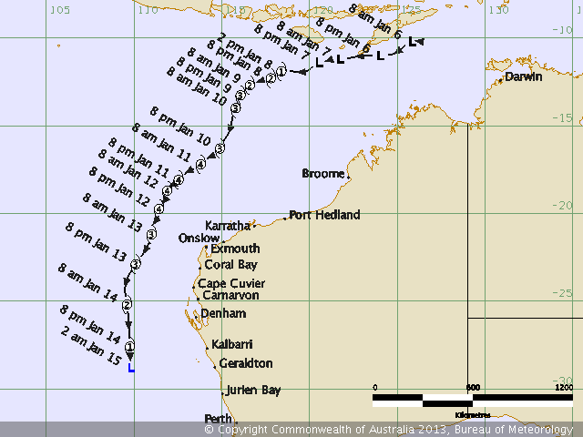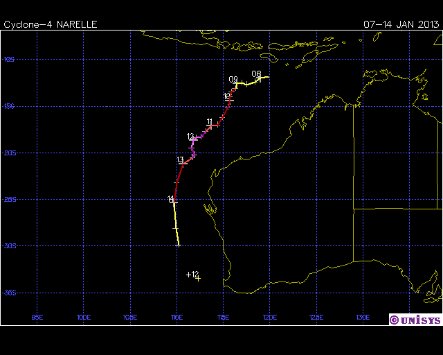 | Narelle | SIO | 1308 | 07 - 14 Jan 2013 | Operational Track | Warn | 08 - 14 Jan 2013 | Operational Track | |||