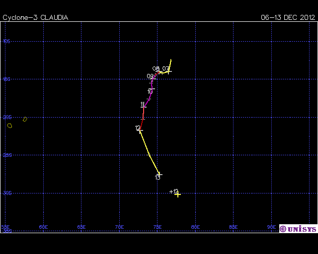 | Claudia | SIO | 1303 | 06 - 13 Dec 2012 | Operational Track | Warn | |||||