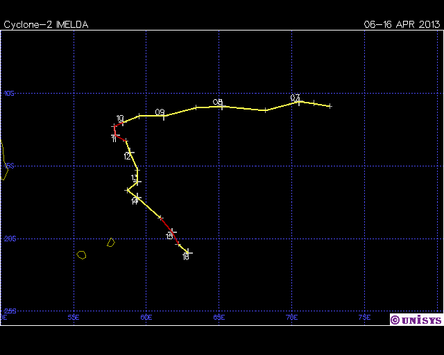 | Imelda | SIO | 1321 | 06 - 16 Apr 2013 | Operational Track | Warn | |||||