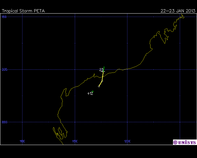 | Peta | SIO | 1312 | 22 - 23 Jan 2013 | Operational Track | Warn | 23 Jan 2013 | Operational Track | |||