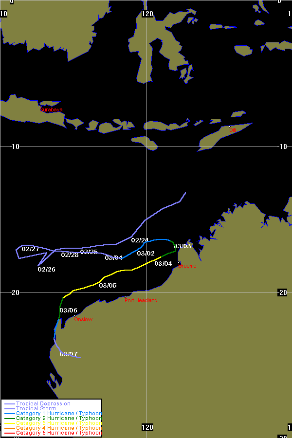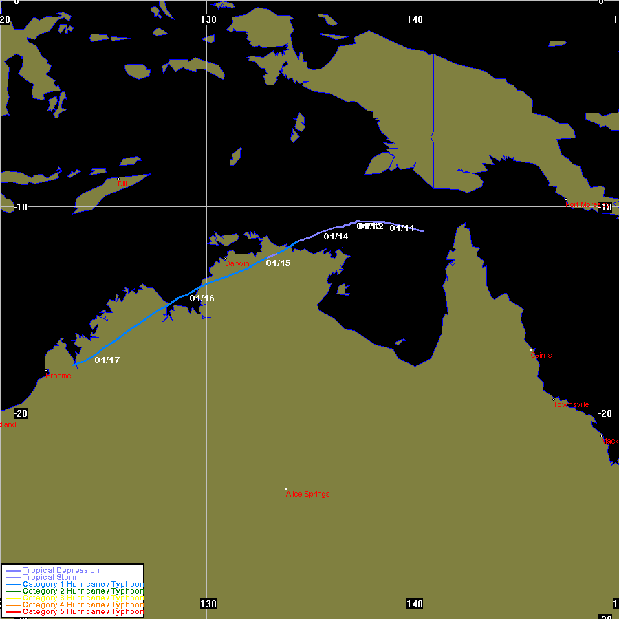 JTWC data obtained from the Naval Pacific Meteorology and Oceanography / Joint Typhoon Warning Centre, Hawaii