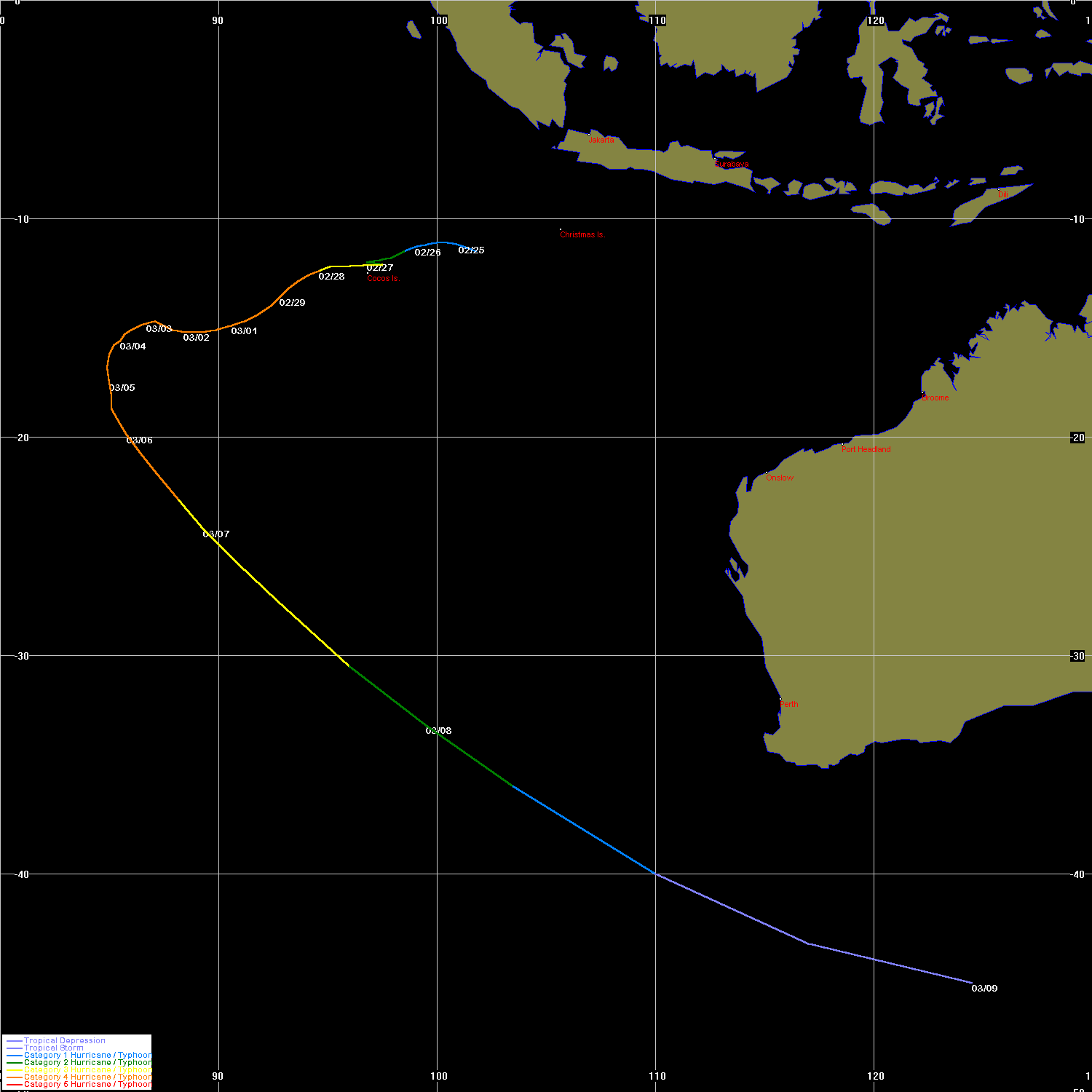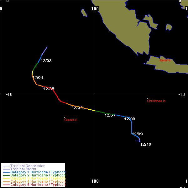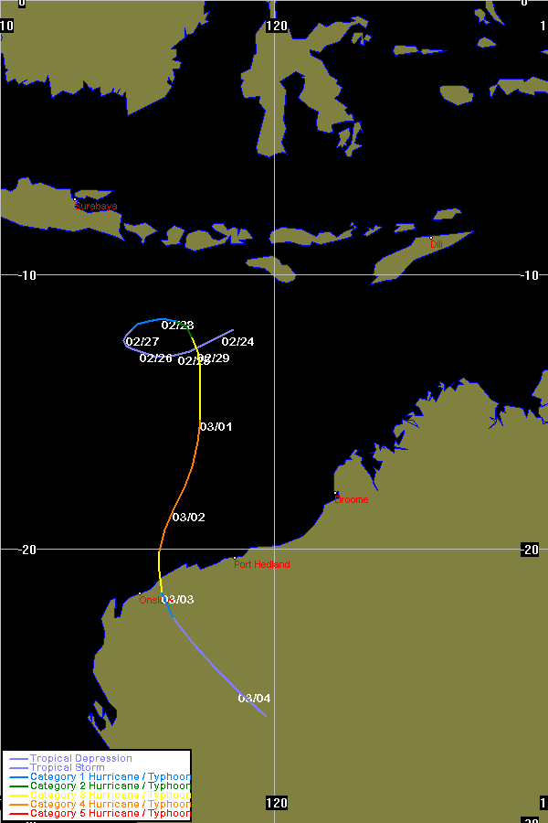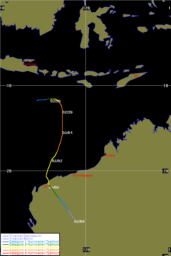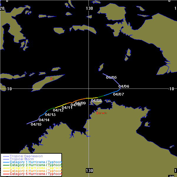 JTWC data obtained from the Naval Pacific Meteorology and Oceanography / Joint Typhoon Warning Centre, Hawaii