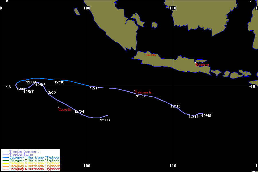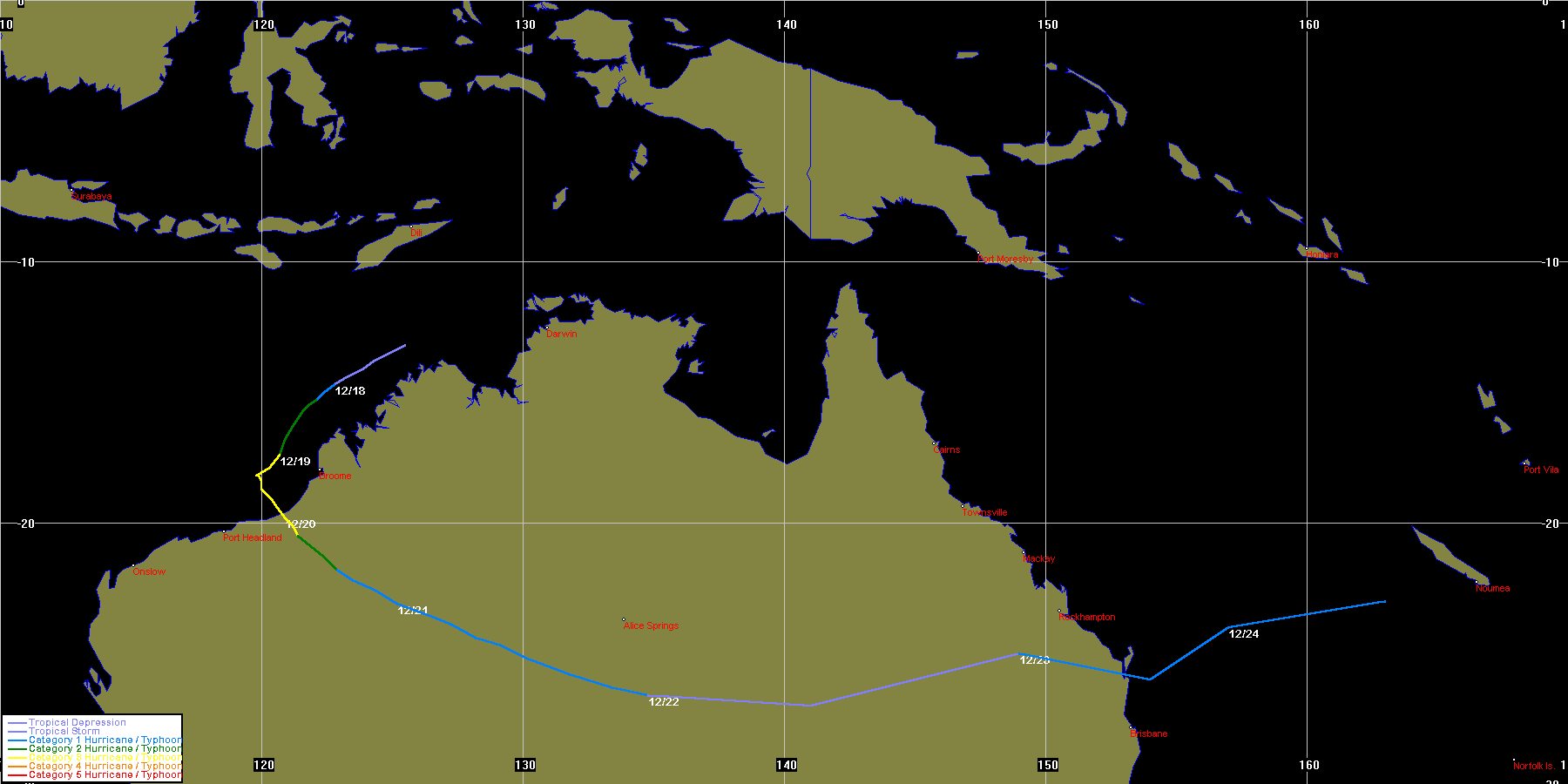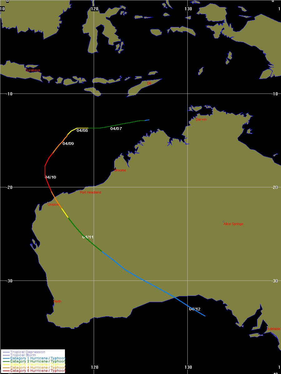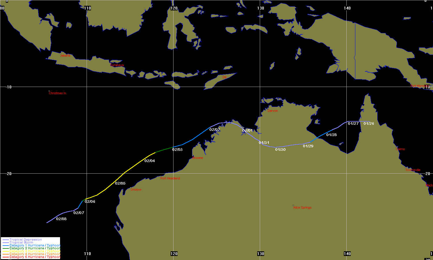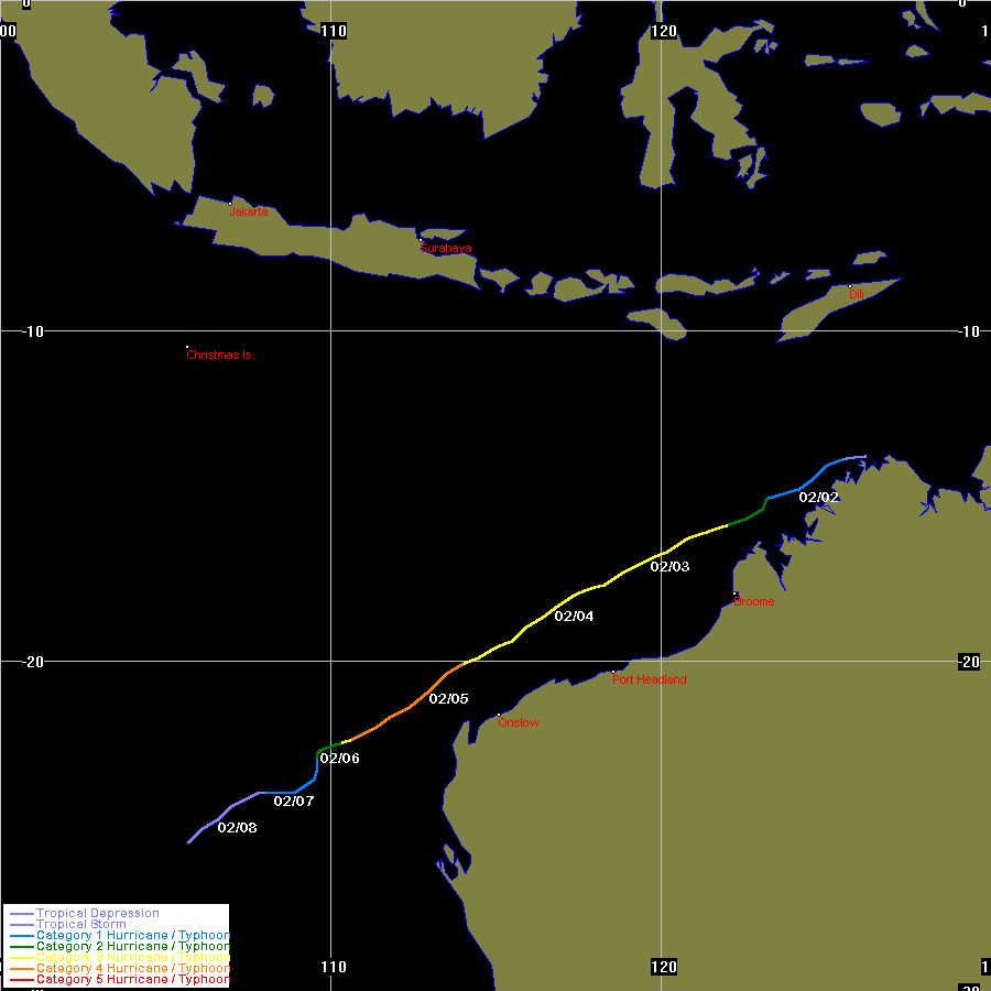 JTWC data obtained from the Naval Pacific Meteorology and Oceanography / Joint Typhoon Warning Centre, Hawaii