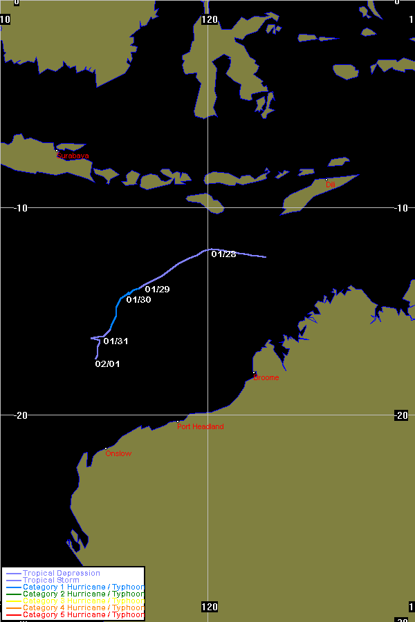 | unnamed | both | 199508 | 27 - 28 Jan 1996 | Map | 986 | Initial track of Jacob as per JTWC | |||