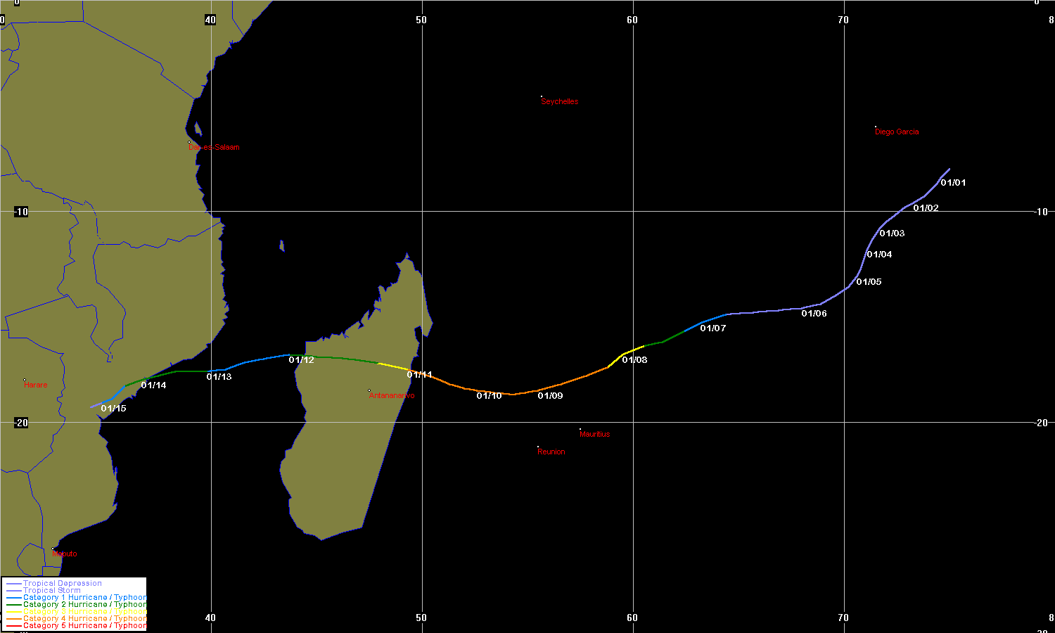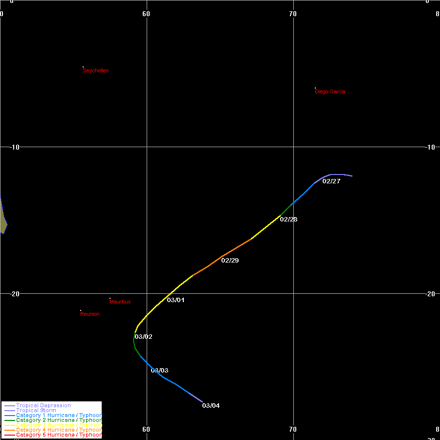 | Edwige | SIO | 9616 | 18 - 29 Feb 1996 | Map | |||||