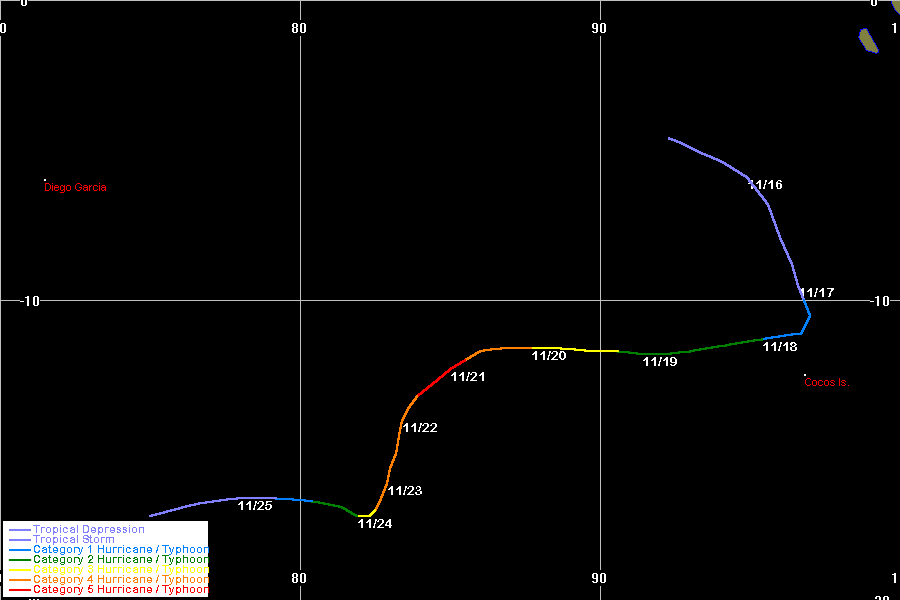 | Olivia | SIO | 9625 | 03 - 12 Apr 1996 | Map | 199514 | 06 - 12 Apr 1996 | Map | 925 | Satellite animation 96040418z - 96041106z |