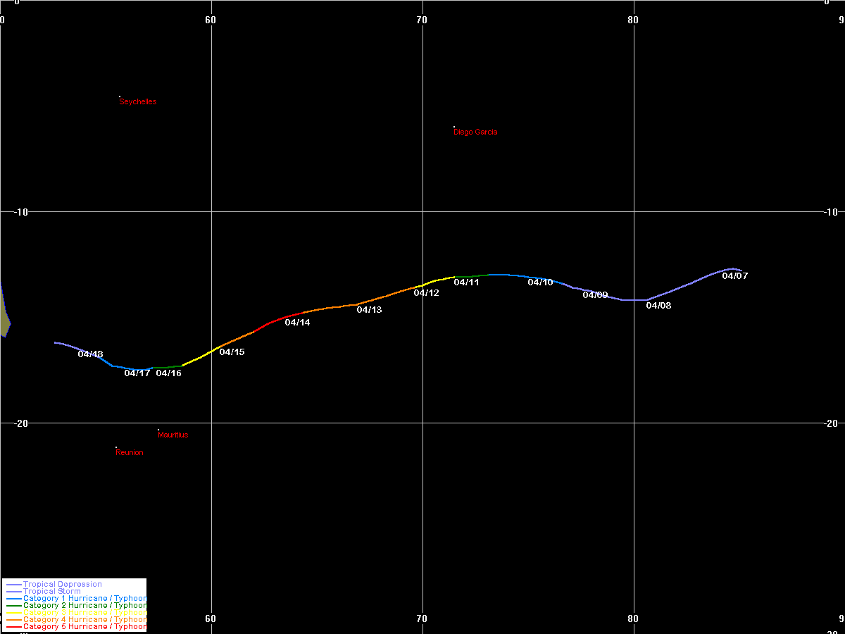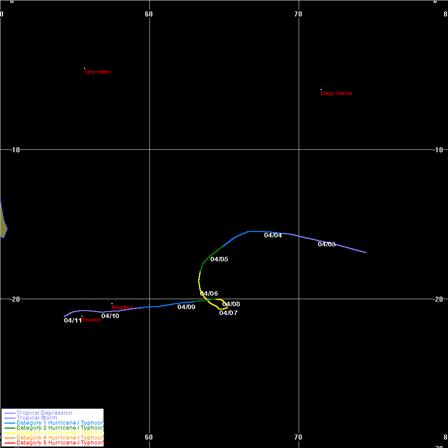 | unnamed | SIO | 9627 | 12 - 19 Apr 1996 | Map | Satellite animation 96041600z - 96041912z |