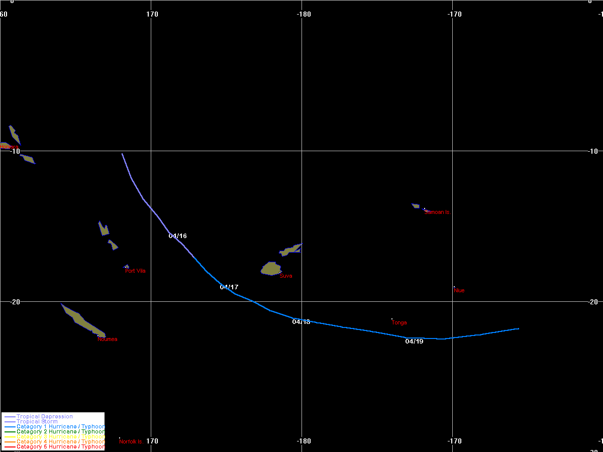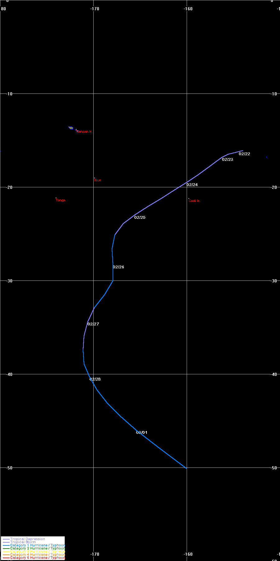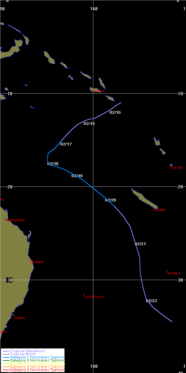 | Harold | SPAC | 9726 | 14 - 22 Feb 1997 | Map | Warn | Satellite animation 97021618z - 97022012z |