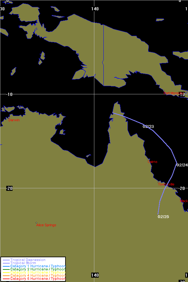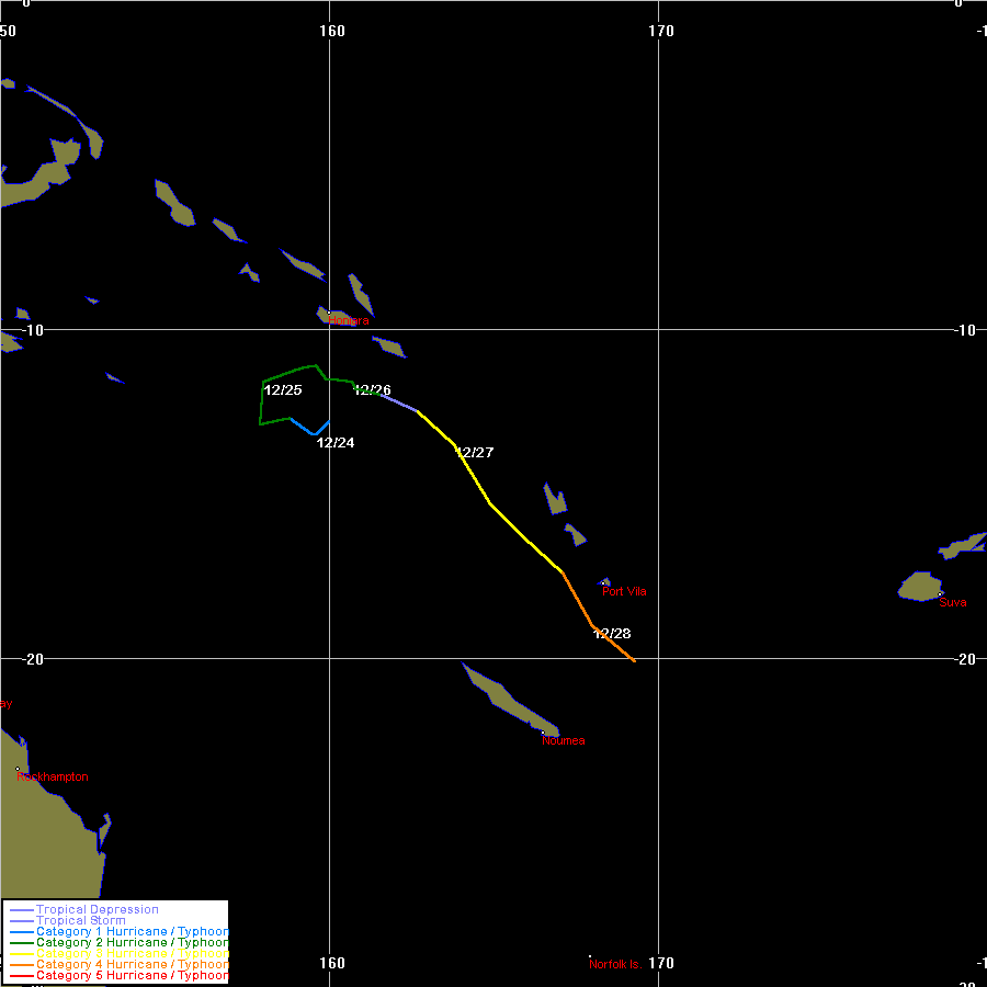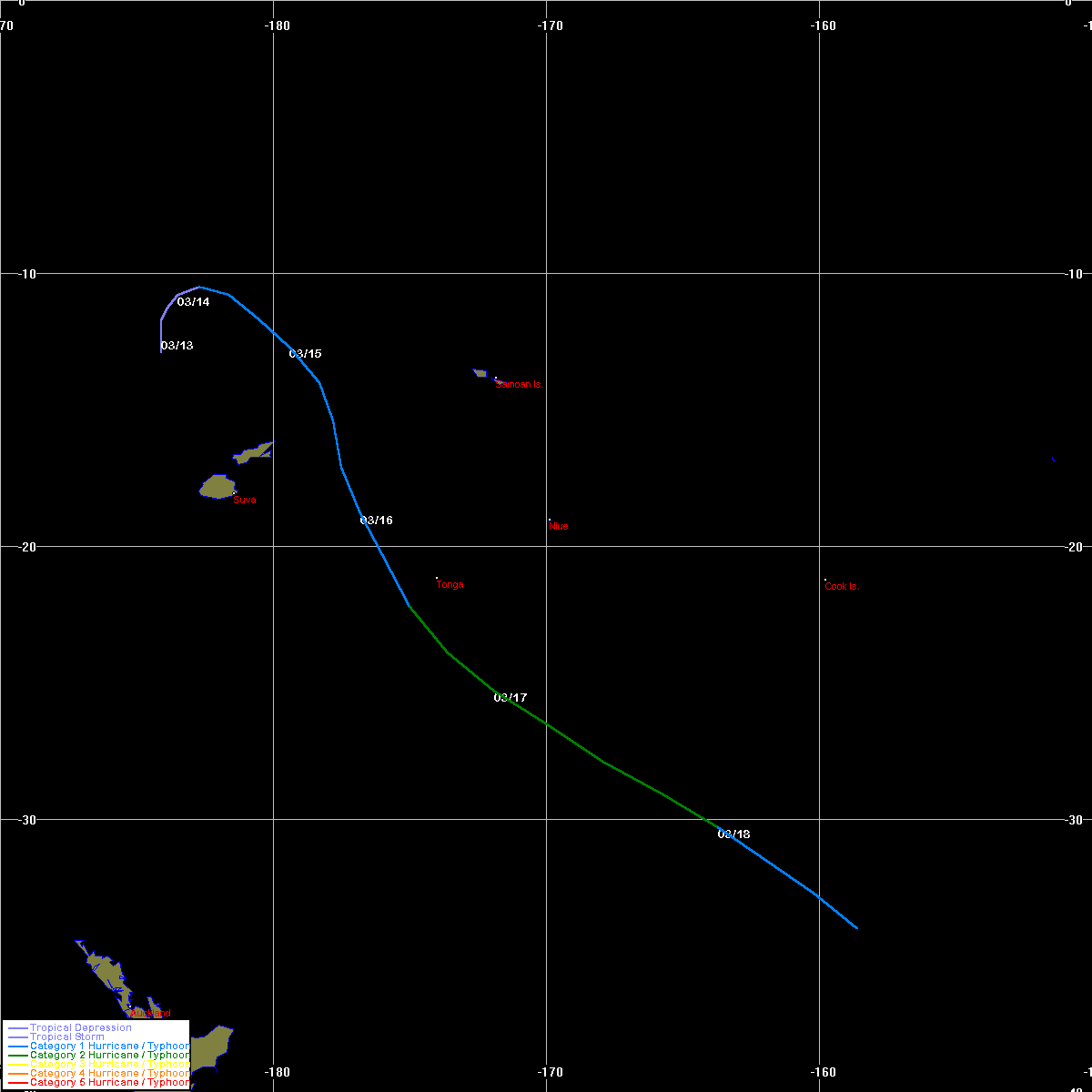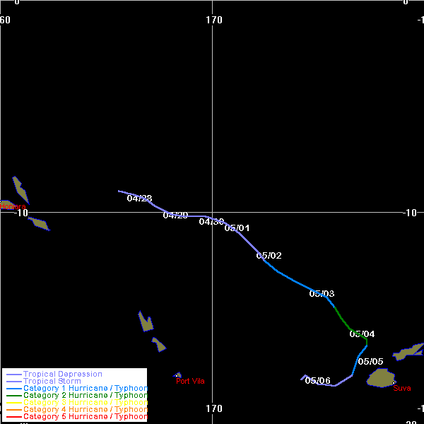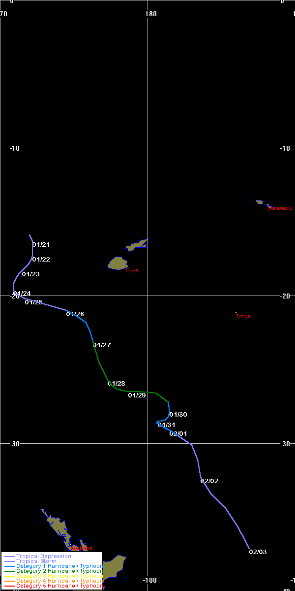 | Harold | SPAC | 9726 | 14 - 22 Feb 1997 | Map | Warn | Satellite animation 97021618z - 97022012z |