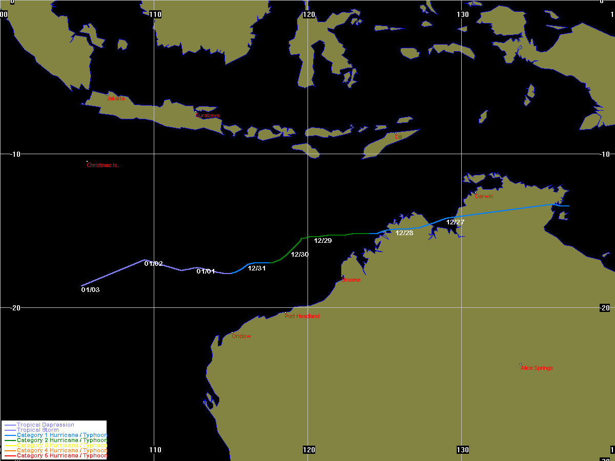 JTWC data obtained from the Naval Pacific Meteorology and Oceanography / Joint Typhoon Warning Centre, Hawaii