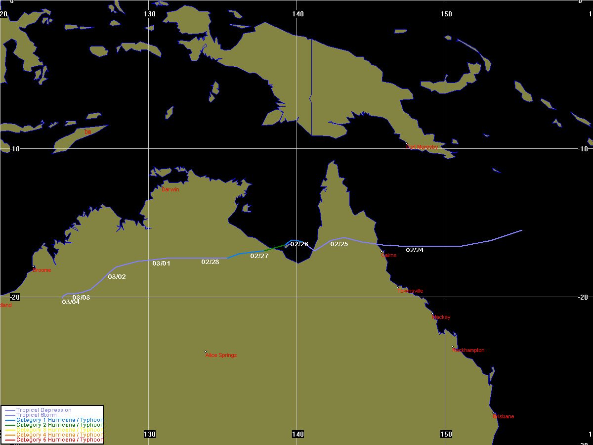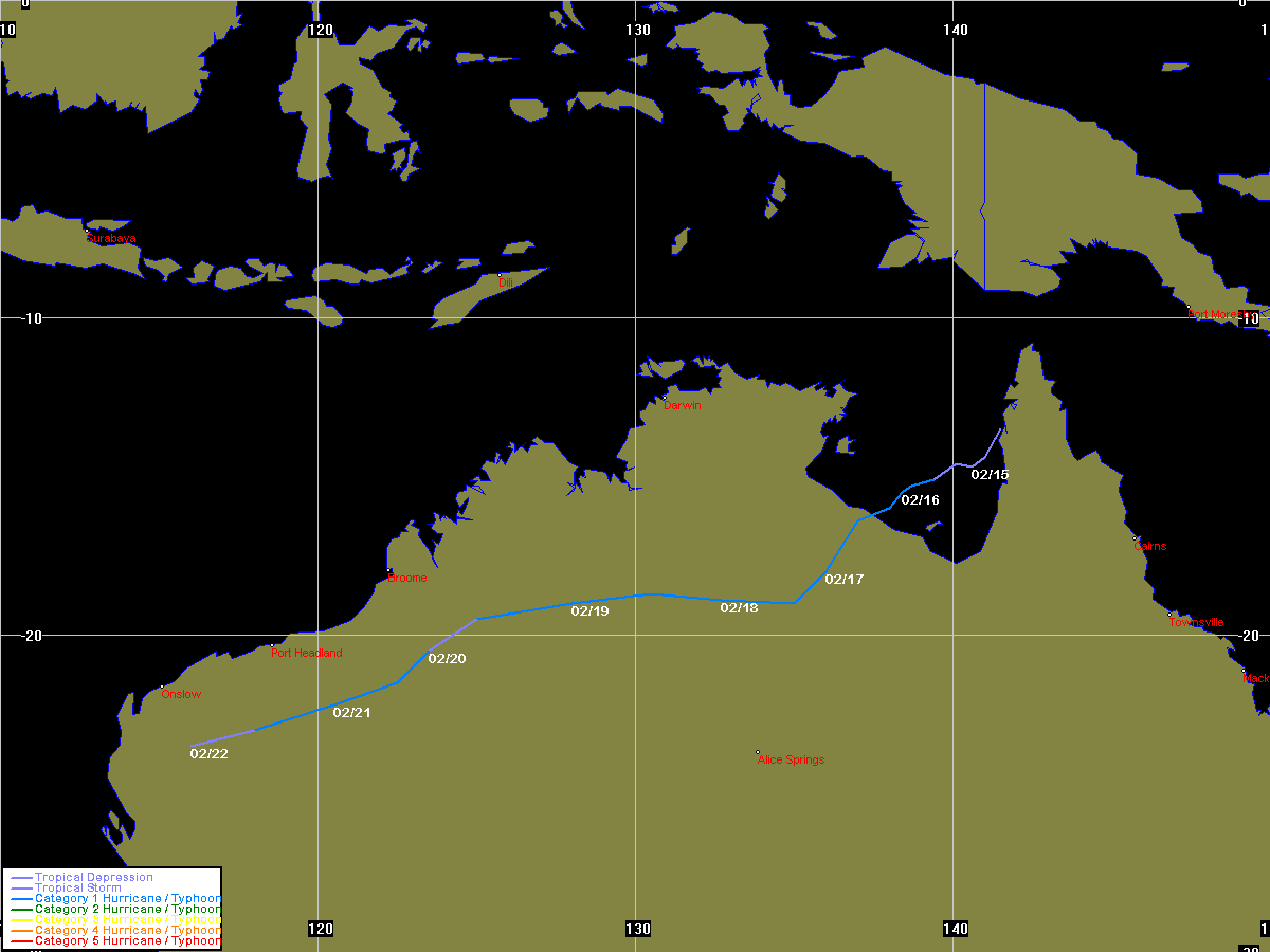 JTWC data obtained from the Naval Pacific Meteorology and Oceanography / Joint Typhoon Warning Centre, Hawaii
