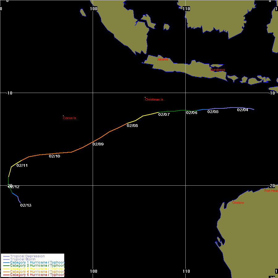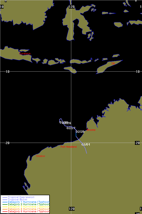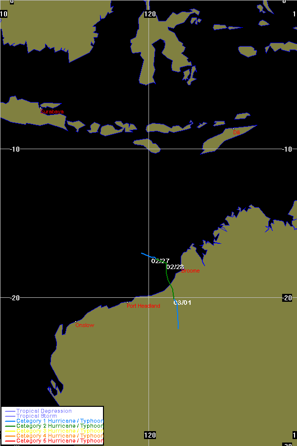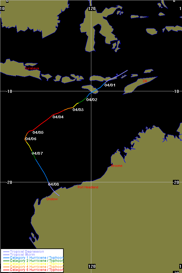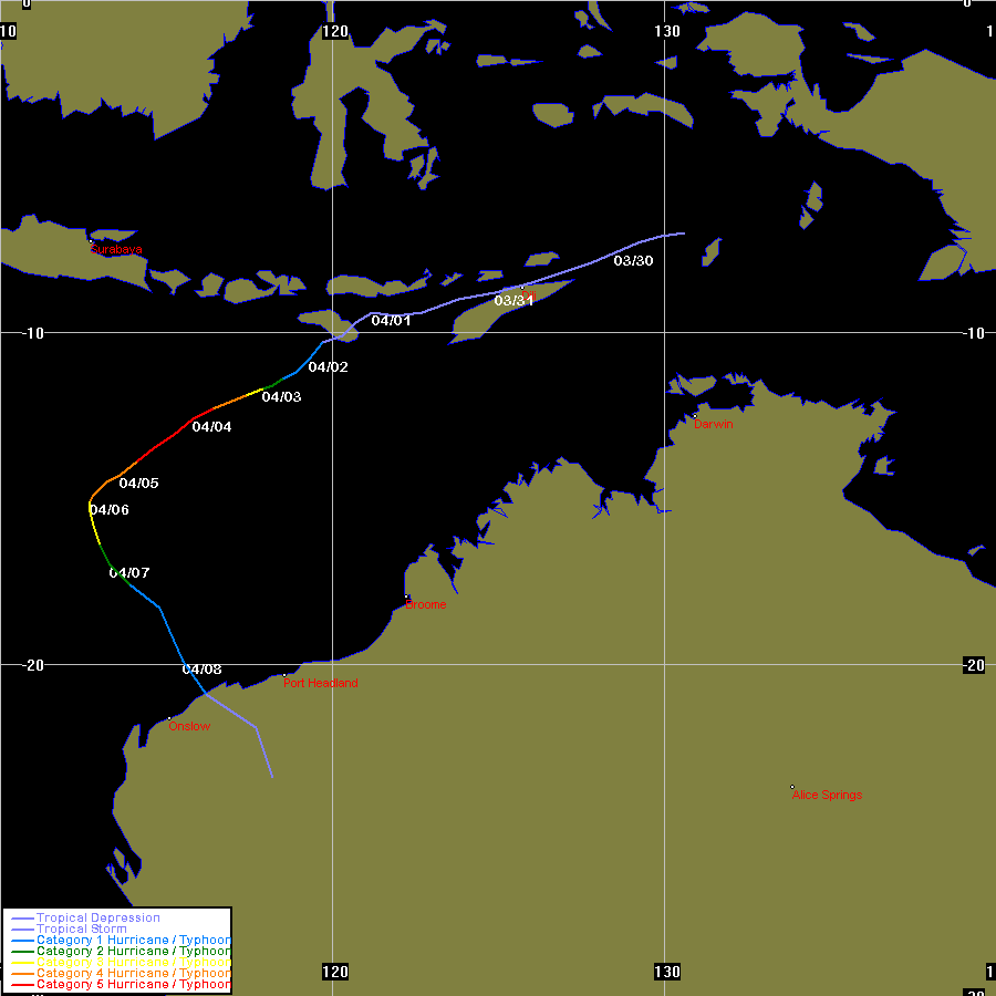 JTWC data obtained from the Naval Pacific Meteorology and Oceanography / Joint Typhoon Warning Centre, Hawaii