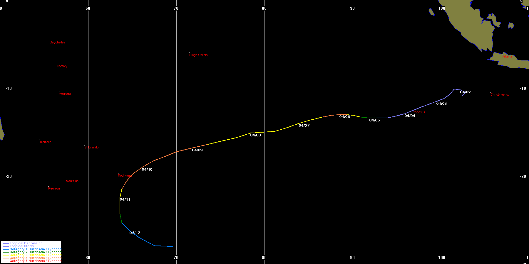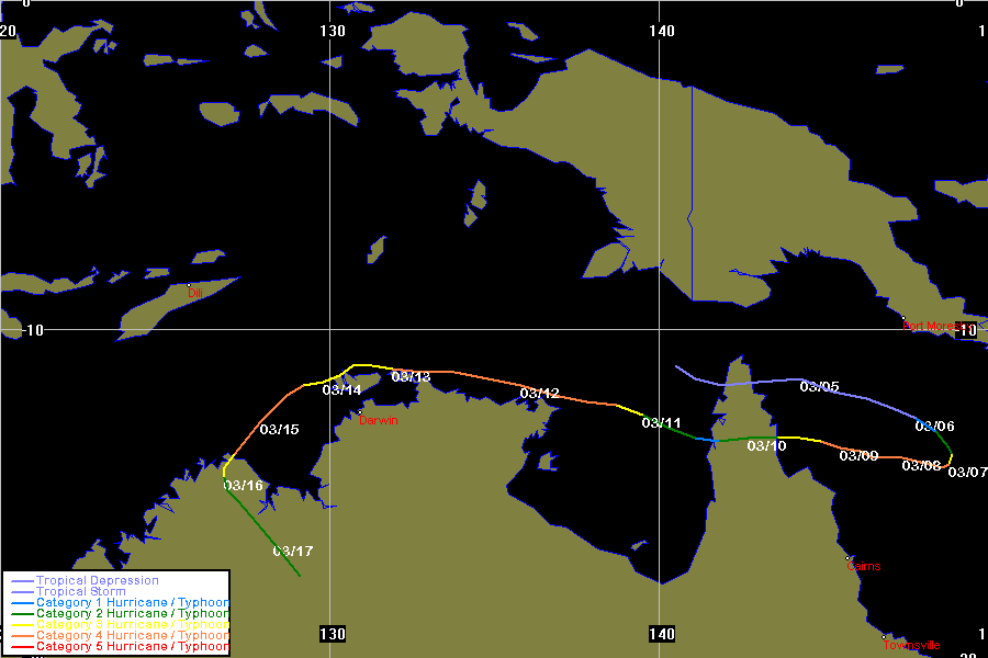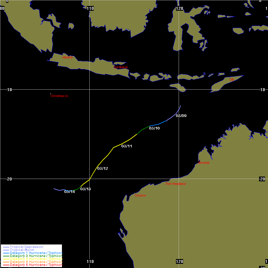 JTWC data obtained from the Naval Pacific Meteorology and Oceanography / Joint Typhoon Warning Centre, Hawaii