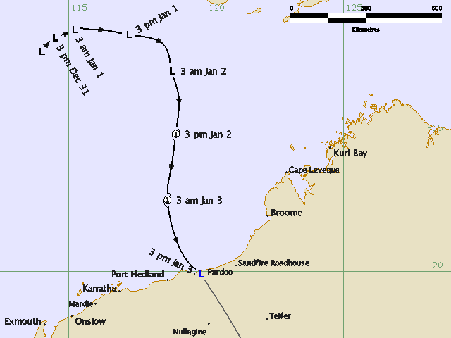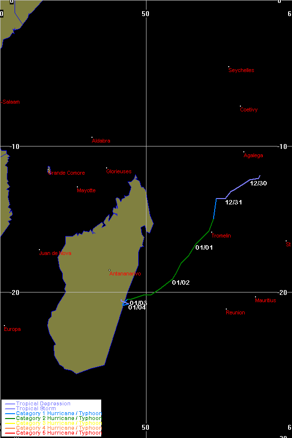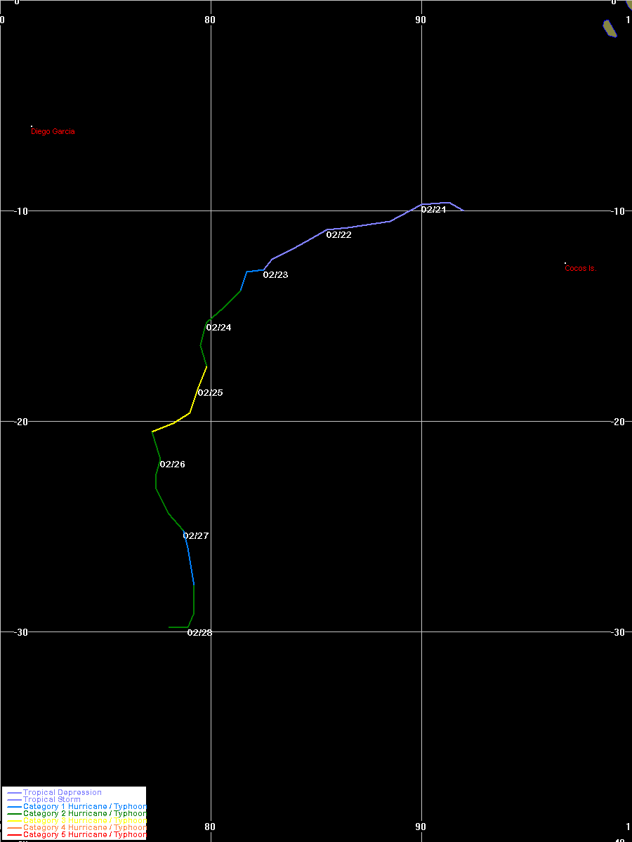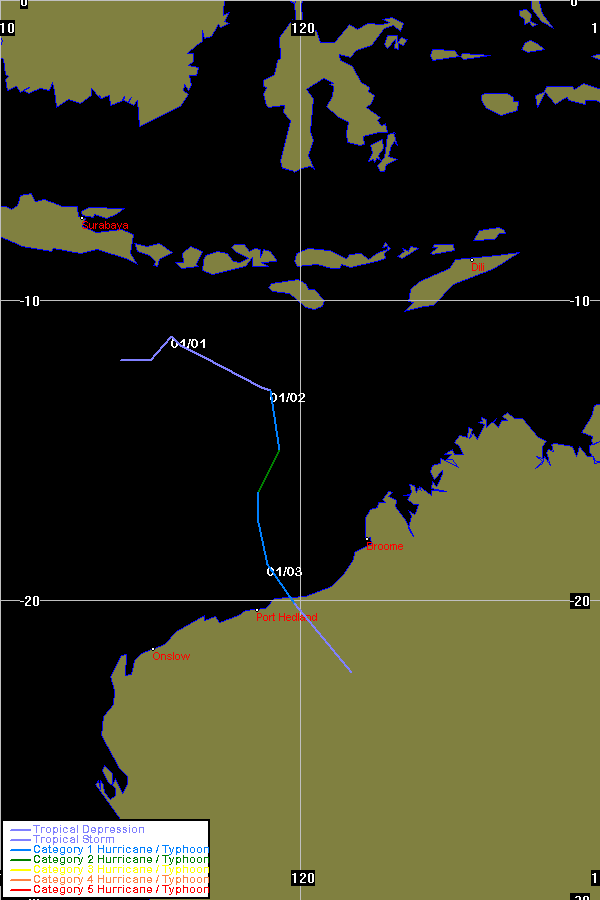 | Isobel | SIO | 0707 | 02 - 03 Jan 2007 | Operational Track | Warn | Map | Warn | Since reclassified by the BoM as NOT being of TC strength. | ||