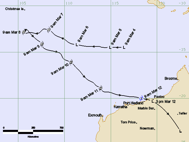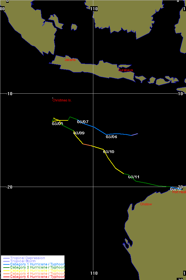 JTWC data obtained from the Naval Pacific Meteorology and Oceanography / Joint Typhoon Warning Centre, Hawaii