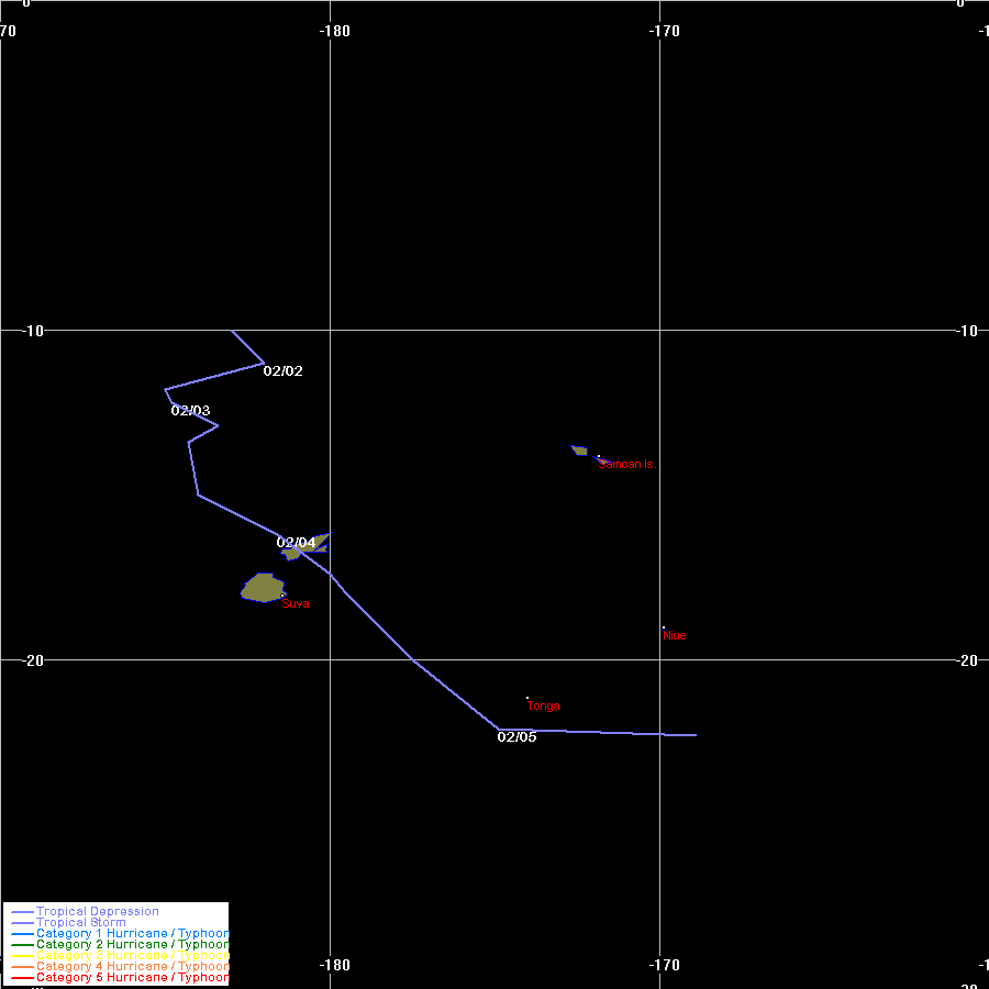 | Yani | SPAC | 0702 | 22 - 25 Nov 2006 | Operational Track | Warn | Fiji Map | Warn | |||