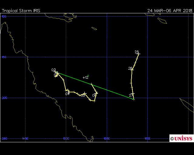 | Iris | SPAC | 1817 | 24 - 27 Mar & 02 - 06 Apr 2018 | Operational Track | Warn | Operational Track | ||||